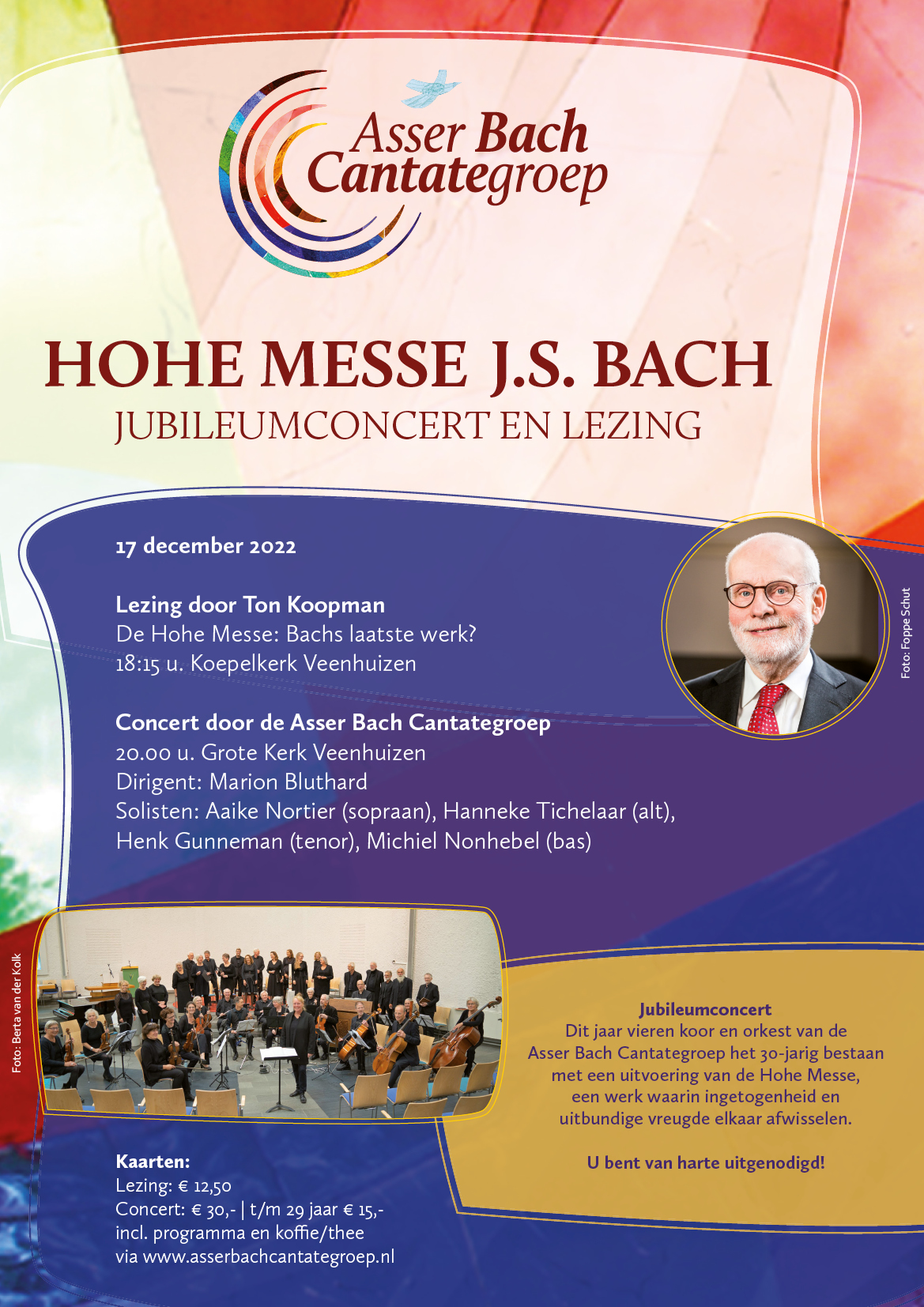 De Hohe Messe heeft zich een vaste plek verworven in het koorrepertoire. Vaak blijft de uitvoering beperkt tot een aantal delen. U krijgt niet heel vaak de kans om in Noord-Nederland het hele werk te horen. De combinatie met de lezing van Ton Koopman geeft u een unieke gelegenheid om kennis te maken met de Hohe Messe of om het werk nog beter te leren kennen!